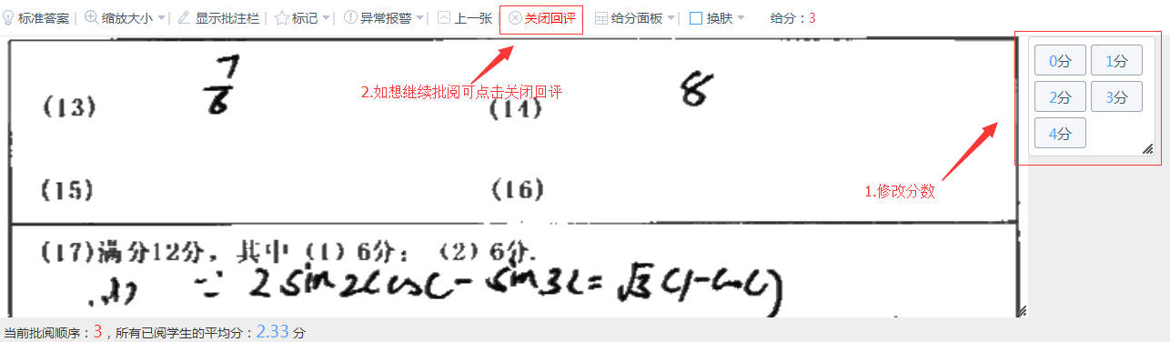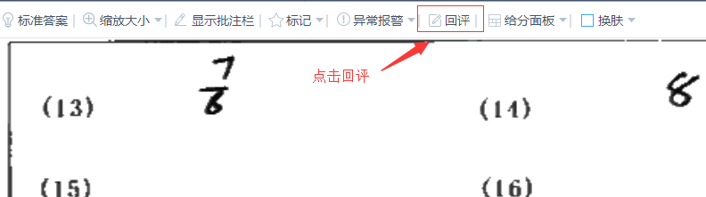 点击工具栏中的回评按钮,则自动跳转上一张批阅过的试卷